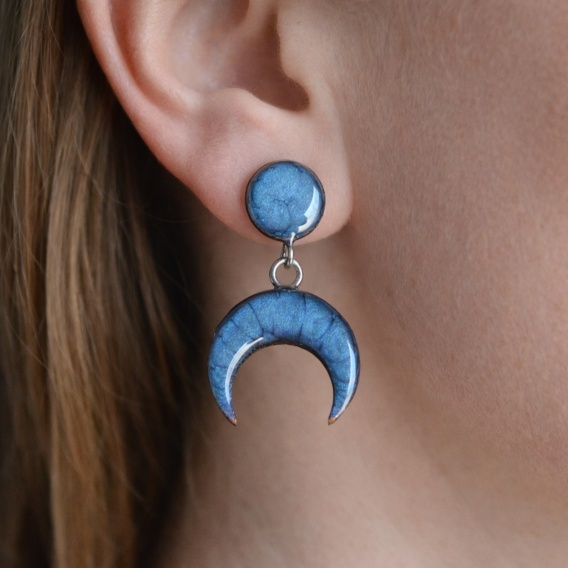 • Granatowe kolczyki na sztyfcie z księżycem