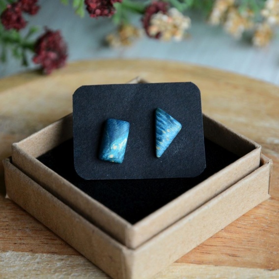Kolczyki sztyfty niebieski trójkąt i prostokąt