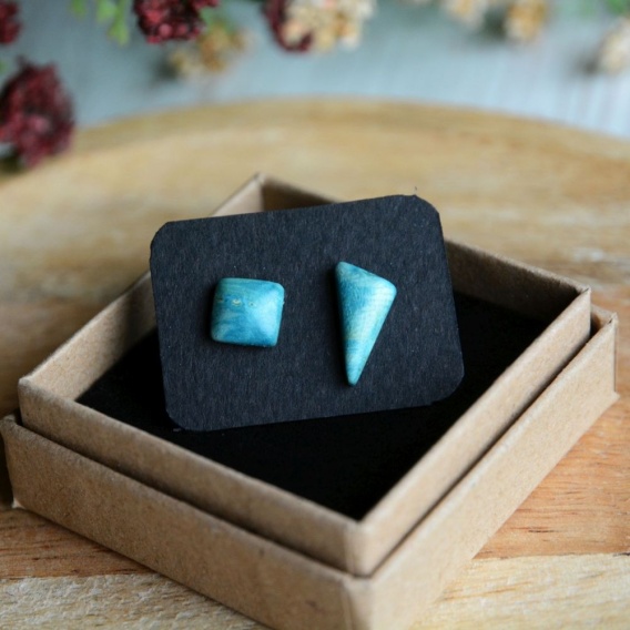 Kolczyki sztyfty turkusowy trójkąt i kwadrat