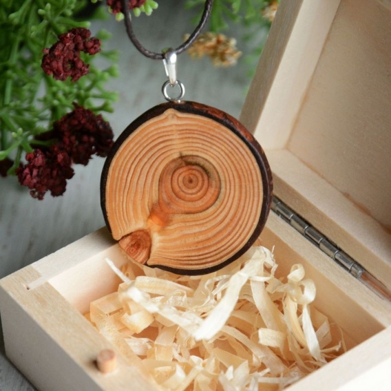 Każdy plaster drewna jest inny. Szczególnie drewno modrzewiowe może posiadać sęki lub inne wzory namalowane przez naturę. Wisior, który otrzymasz będzie wyjątkowy i jedyny w swoim rodzaju.