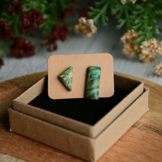 Ręcznie wykonane zielone kolczyki nie do pary.