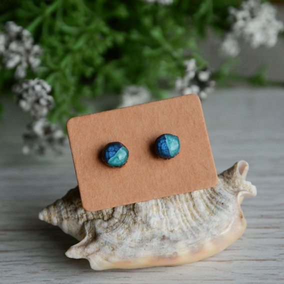 Jak ocean - kolczyki sztyfty ręcznie malowane na drewnie