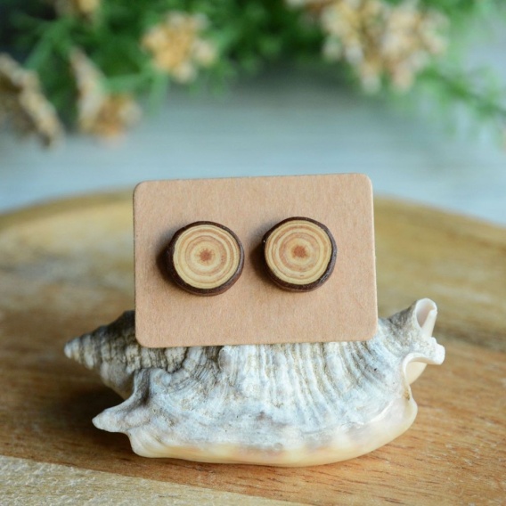 Kolczyki sztyfty z pięknego drewna modrzewiowego. Wykonane z gałęzi pociętej na plastry oraz srebra.