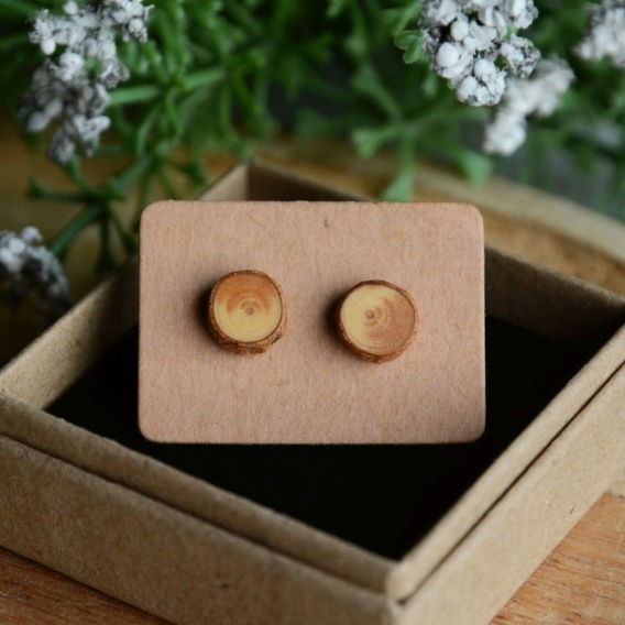 Kolczyki sztyfty wykonane z drewna świerkowego oraz srebra. Otrzymasz je ozdobnie zapakowane w drewniane pudełeczko. Idealne na prezent dla leśników i osób kochających las :)