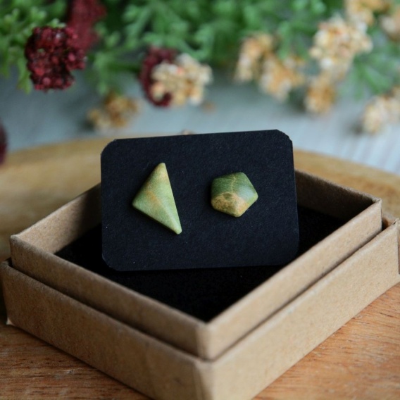Kolczyki nie do pary - zielony trójkąt i sześciokąt.