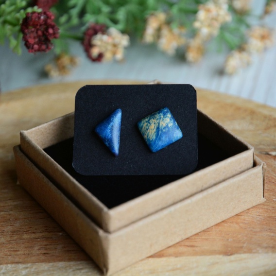 Kolczyki sztyfty granatowy trójkąt i kwadrat