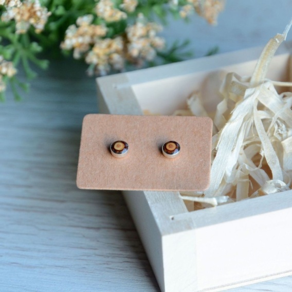• Maleńkie kolczyki z drewna w srebrnej oprawie