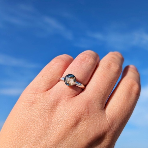 Pierścionek z korą brzozy w odcieniach niebieskiego