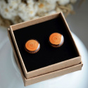 Kolczyki sztyfty z pięknego drewna modrzewiowego. Wykonane z gałęzi pociętej na plastry oraz srebra. Oczka posiadają liczne słoje otoczone korą. Zabezpieczone zostały bezbarwną żywicą. Kolczyki otrzymasz w ładnym pudełeczku, ozdobnie zapakowane.